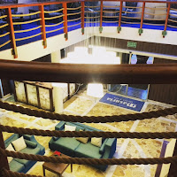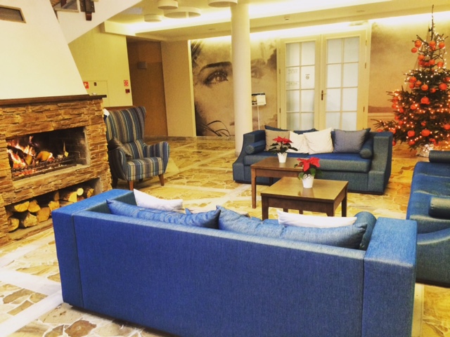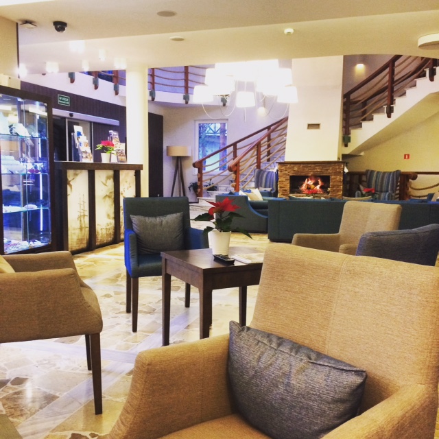 Bo chociaż za oknem padał śnieg, chciało się wyjść na zewnątrz żeby posiedzieć nad jeziorem, przejść się alejkami, pooddychać krystalicznie czystym powietrzem. A potem wejść do hotelu, gdzie w lobby znajduje się wielki kominek z miękkimi sofami, przy którym masz ochotę zagrzać zimny nos. Ciekawe jest to, że owe miejsce znajduje się w sercu hotelu ale zupełnie ci to nie przeszkadza i z przyjemnością siadasz tam z winkiem i gazetą. Fajne w tym hotelu jest to, że takich miejsc "do posiedzenia" jest więcej. Dla tych co lubią lekturę czekają zakamarki na parterze z wygodnymi fotelami. Dla chcących porozmawiać na piętrze, na które wchodzi się genialnymi, "marynarskimi" schodami - przygotowano parę stolików i foteli. Dla lubiących rozrywkę - są stoły bilardowe i tor z kręglami w podziemiach jak również wydzielona sala do rozmów przy "drinku" oraz dancefloor. Naprawdę nie żartowałam mówiąc, że można tu zrobić wszystko a co ciekawsze, w ogóle nie koliduje to z ciszą i spokojem - jeżeli ktoś właśnie na to ma ochotę.