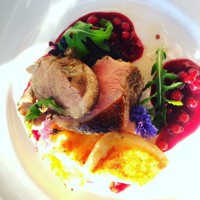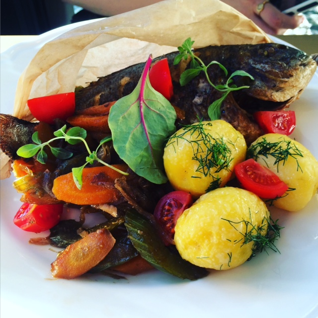 Drugie danie przysporzyło nam nieco problemów, bo "na wszystko miałyśmy ochotę", niemniej jednak najlepszym wyborem była polecana przez Szefa Kuchni Dorada w papilocie z cytryną, duszonymi warzywami i ziołami (55 zł) oraz Filet z kaczki sous vide z czerwona kapustą, kluskami leniwymi i sosem z czerwonej porzeczki oraz trawy żubrowej (47 zł). Kaczka genialna! Jestem wielkim fanem metody sous vide jeśli o mięsa chodzi, do tego uwielbiam połączenia z sosami z kwaśnych owoców dlatego dla mnie danie fantastyczne. Delikatne mięso, lekko różowe z przyrumienioną skórą, z lekkością dało się kroić i z przyjemnością zjadać. Dorada z wyczuwalną nutą cytryny orzeźwiała. I w akompaniamencie doskonałego piwa był to bardzo fajny, treściwy posiłek.