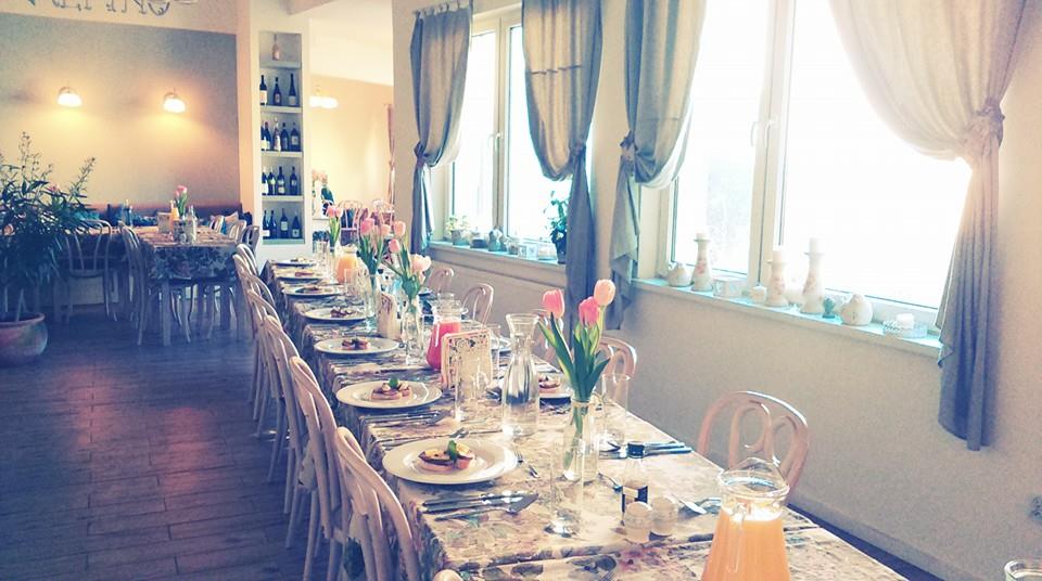 Wnętrze zaskakuje. Niewielkie wejście w niewielkiej elewacji na ulicy Królowej Jadwigi 184 (jezuuu przestańcie narzekać, że to nie centrum i ogarnijcie się trochę z dojazdami) zupełnie nie oddaje tego, co kryje się w środku. Przestronne sale z przeszklonym patio, gdzie odbywają się koncerty. Piękny błękitno biały wystrój, delikatne oświetlenie, ciężkie wzorzyste obrusy na stołach, drewno i detale w stylu prowansalskim sprawiają, że miejsce staje się idealnym na obiad, randkę, okazję, spotkanie czy po prostu by dobrze zjeść.
