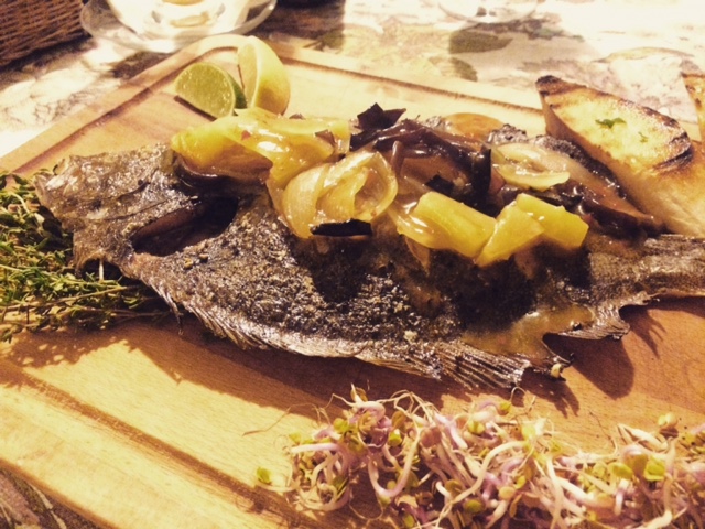 W temacie dań głównych zdałam się na obsługę i nie zawiodłam się. Nie wiem czy kiedykolwiek próbowaliście ryby zwanej Nagład ale od wizyty w Alpino ta stała się moim rybnym faworytem. Delikatna, prawie bez ości, bez nadmiernego zapachu morza, rozpływa się w ustach. Podana w sosie słodko-kwaśnym z grzybami i ananasem. Tak wiem, wieje małą Azją bardziej niż Francją i faktycznie przyznam tu, że w wersji na przykład cydru i jabłek albo w sosie marynarskim (z masłem, pietruszką i parzonymi szalotkami) była by kwintesencją tej kuchni ale warto się na nią skusić bo jest jedną z ulubionych ryb wykorzystywanych we francuskiej kuchni. Przebiła nawet pieczone langustynki z bruschettą i salsą pomidorową, które faktycznie w akompaniamencie pomidorowym wysoko stawiają poprzeczkę.