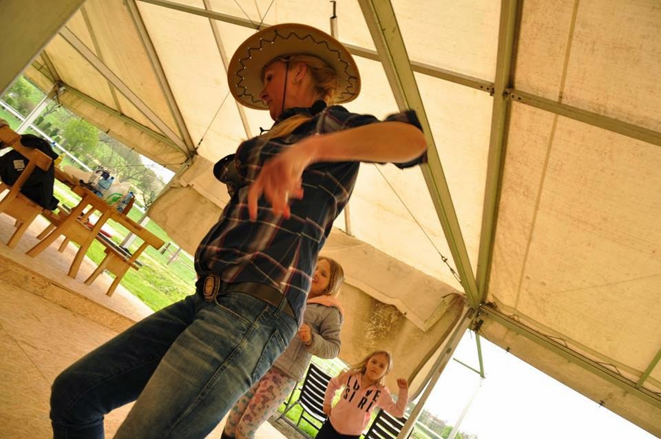 Podczas majówki bawiliśmy się przednio. Odkryłam w sobie talent malowania buzi dzieciakom, trochę pojeździliśmy konno, tańczyliśmy lub raczej - próbowaliśmy - line dancing i oczywiście jedliśmy pyszności z grilla. A wszystko to w towarzystwie niby przypadkowo poznanych ze sobą ludzi.