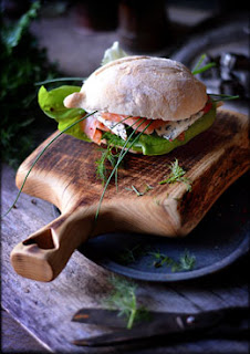 Filet ze świeżego łososia polewamy oliwą z oliwek, solimy, zawijamy w folię i pieczemy w 180 stopniach. Kiedy jest już gotowy, odstawiamy do wystygnięcia, wybieramy wszystkie ości i drobno siekamy. Wrzucamy go do miski i rozgniatamy widelcem aby uzyskać konsystencję pasty. Dodajemy kawałki łososia wędzonego, sok z cytryny, drobnoposiekany koperek i tymianek, krem z gorczycy, masło i ricottę. Mieszamy wszystko dokładnie a na koniec doprawiamy świerzo zmielonym pieprzem. Odkładamy do lodówki na przynajmniej dwie godziny.
