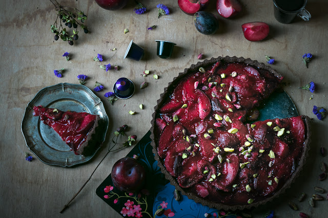 1. Przygotowujemy kruche ciasto. Do dużej miski wsypujemy mąkę, kakao wkładamy masło pokrojone na drobne kawałki. Podszczypując czubkami palców łączymy mąkę i masło, aż otrzymamy mieszankę o konsystencji piasku. Robimy dołek w cieście i do środka wkładamy jajko, wsypujemy cukier i sól. Szybko zagniatamy ciasto, tak by miało jednolitą konsystencję. Formujemy kulę i wstawiamy do lodówki, co najmniej na pół godziny lub nawet na cały dzień.