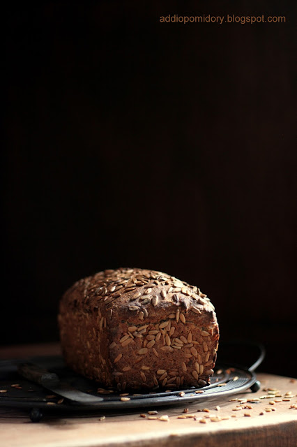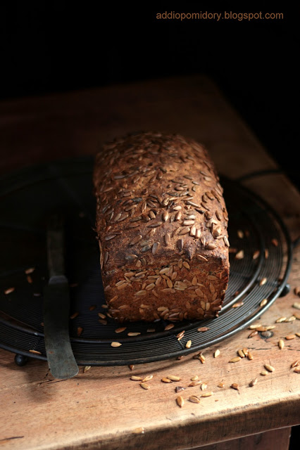 Pełnoziarnisty chleb żytni ze słonecznikiem.