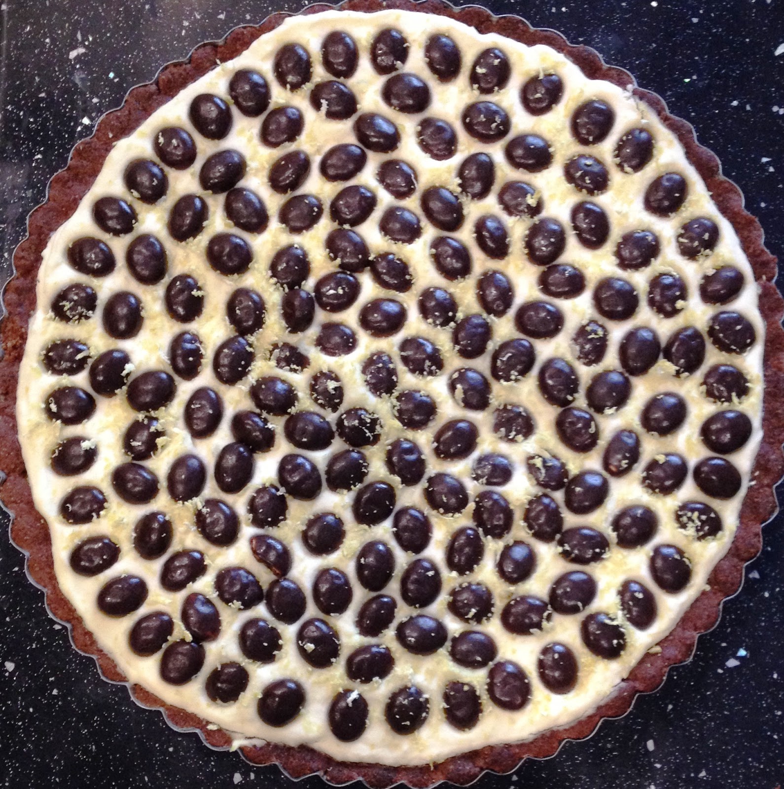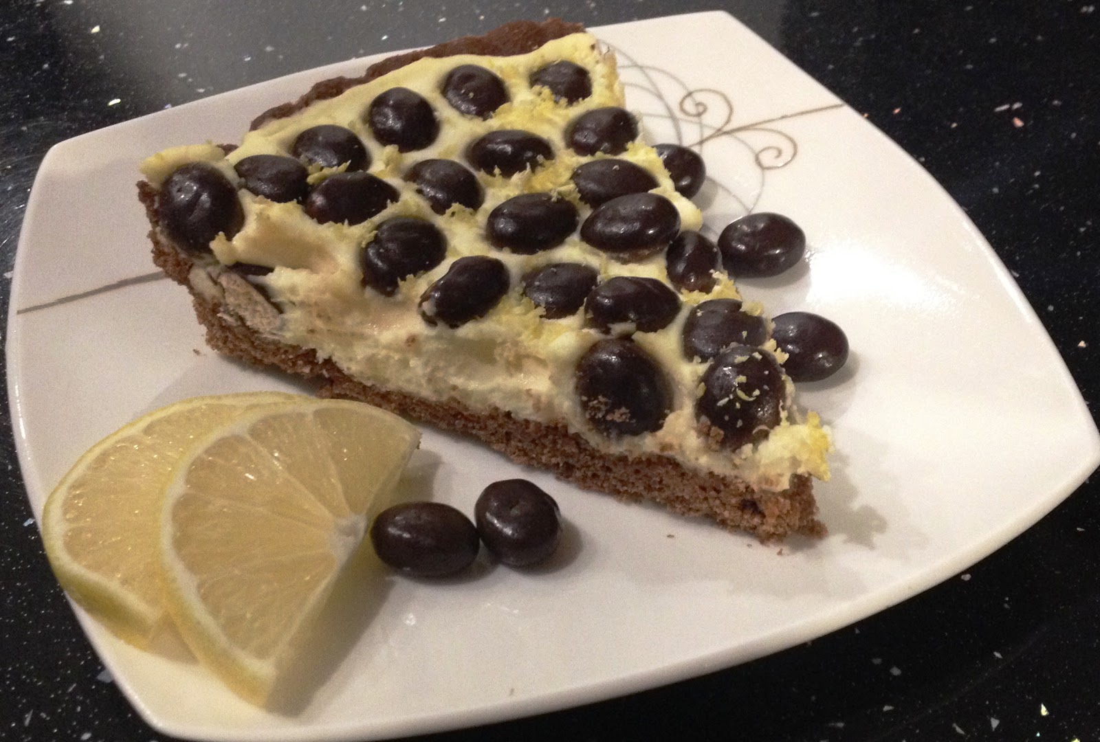 Oto mój mały eksperyment...rześka cytrynowa tarta z okrągłymi herbatnikami w czekoladzie deserowej na spodzie kakaowym z mąki orkiszowej. Pełna improwizacja :) Wyszła krucha i delikatna, a herbatniki przyjemnie chrupią. Przekonajcie się sami ;)