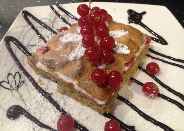 Pomysł na to ciasto zaczerpnęłam z książki "Ciasta domowe",choć trochę go zmodyfikowałam. Przede wszystkim wymieniłam mąkę pszenną na dużo zdrowszą mąkę orkiszową. Uważam też, że ciasto to lepiej prezentowałoby się w formie tarty- mniej ciasta więcej bezy. U mnie proporcje między ciastem a bezą trochę wyszły zaburzone, ale ciasto mimo to dobrze smakowało :)