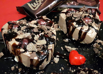 Oto pomysł na prosty i niewymagający dużo pracy deser na Walentynki. Serniczki czekoladowe na zimno w kształcie serduszek z wiśniami. Nie są to zwykłe serniczki - w środku znajdują się chrupiące wafelki Lusette. Każdy serniczek oblany jest polewą czekoladową i obsypany wafelkiem.
