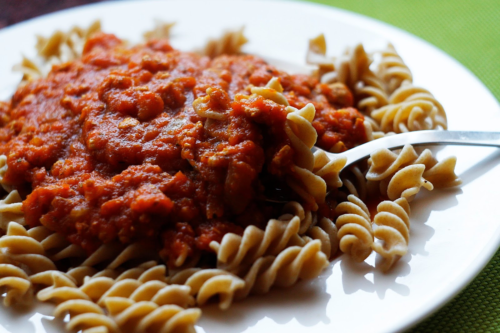 Nowym produktom w mojej diecie mówię stanowczo TAK ! Wczorajszy obiad udał się obłędnie, smakował jak w eleganckiej restauracji, zachwycał wizerunkiem a przede wszystkim był źródłem najlepszych i najbardziej odżywczych składników. Przedstawiam makaron świderki z sosem a'la Bolognese w wersji dla zdrowego studenta :)