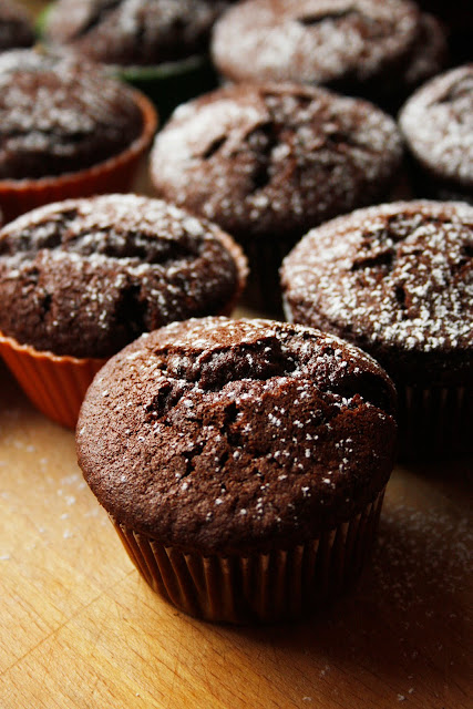 Nie mam pojęcia kiedy ten czas mija. Nie zmienia to faktu, że mimo wszystko lubię ten czas i świąteczną atmosferę. Gdzie się nie obejrzeć choinki, światełka, świąteczna gorączka, która tez ma swój urok. Ja zaszywam się w kuchni i mam niekończącą się randkę z moim piekarnikiem. Dlatego dziś muffiny korzenno-kakaowe w sam raz do świątecznej kawy :)