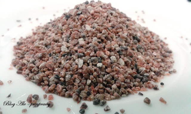 Choć nazwa sugeruje, że sól jest czarnego koloru, jej barwa jest zazwyczaj różowo-szara lub fioletowa. Czarna sól Kala Namak to indyjska sól kamienna pochodzenia wulkanicznego o specyficznym jajecznym aromacie (jak dla mnie zapach gotowanych jajek). Bogata m.in. w wapń, żelazo, potas, sód i magnez. W kuchni wegańskiej stosowana jest do doprawiania tofu.