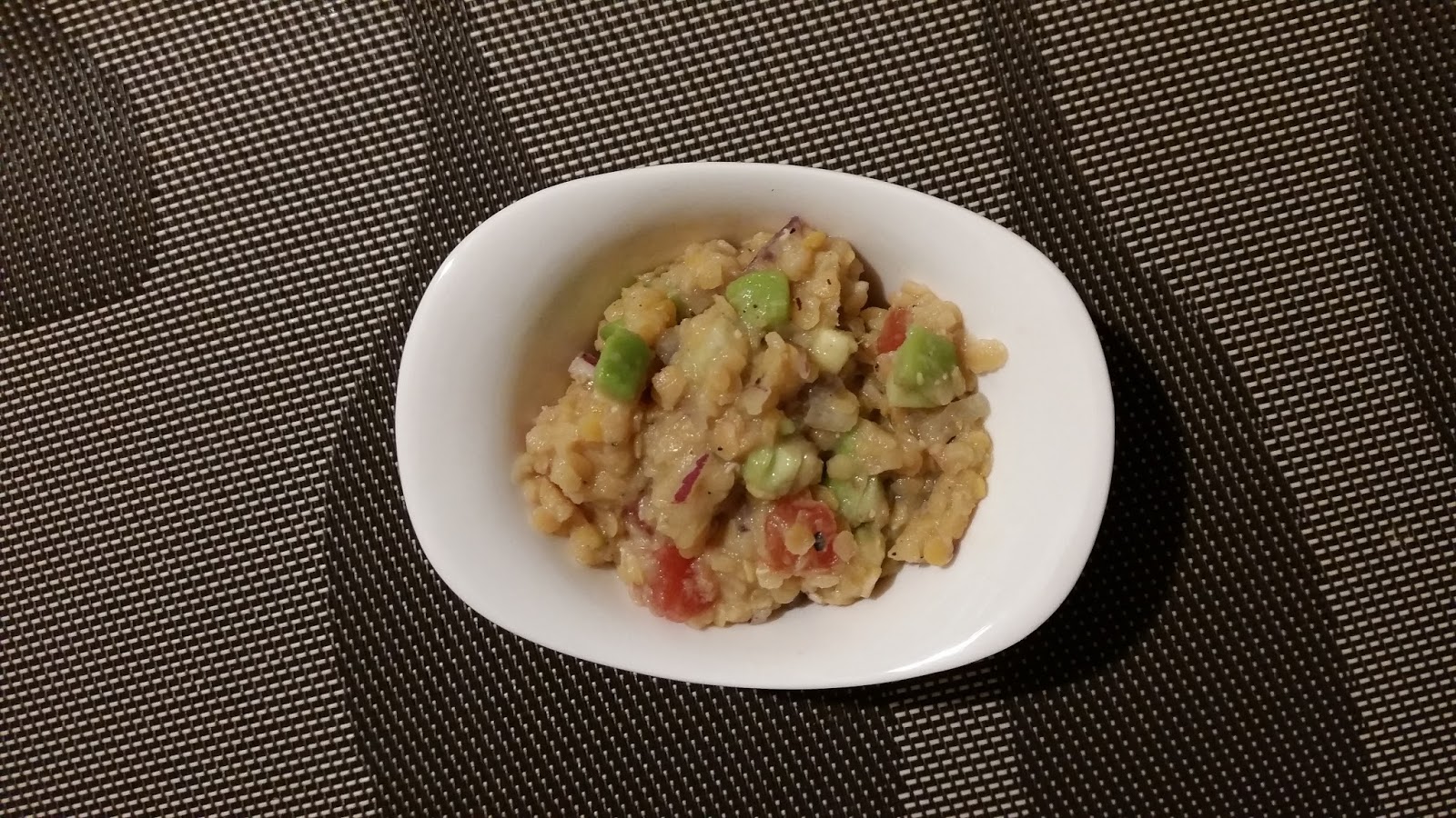 Soczewicę gotujemy "al dente" w osolonej wodzie. Ważne żeby nam się nie rozgotowała i w połączeniu z pokrojonym w kostkę pomidorem (dodajemy tylko twardszą część miąższu) i avokado, aby nie powstała tak zwana "ciapa";) Dodajemy drobno posiekaną czerwoną cebulę i doprawiamy do smaku solą, pieprzem i octem winnym. I gotowe! ;)