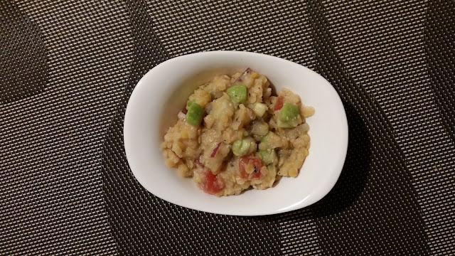 Wprawdzie na zdjęciu sałatka nie wygląda zbyt atrakcyjnie ale uwierzcie mi... smakuje wybornie i jest pysznym daniem samym w sobie lub jako dodatek do grillowanego mięsa. I w sam raz na upalne dni;)