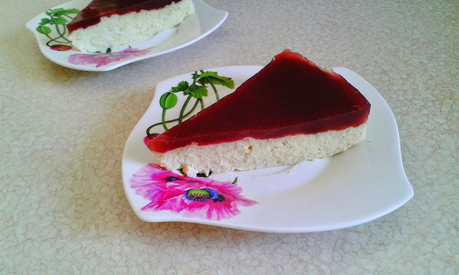Wierzch można zrobić z galaretek i owoców lub z musu owocowego z dodatkiem żelatyny. Wybrałam tę drugą opcję ze względu na zapasy w podręcznej spiżarni.