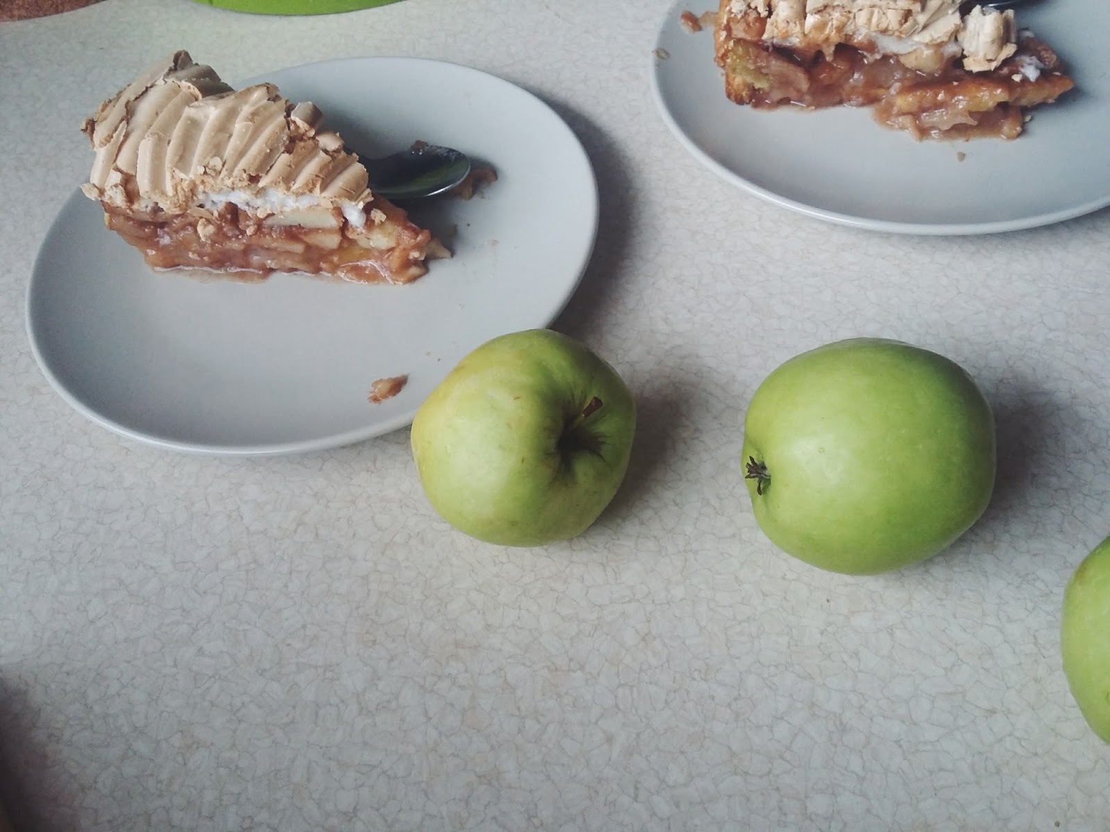 Idealna. Na idealnie kruchym spodzie, co dosyć istotne, bo w połączeniu z jabłkami i chrupiącą bezą jest niesamowicie kontrastowym ciastem. Ciasto prezentuje się niczego sobie, więc sprawdzi się nie tylko jako deser, ale również jako dekoracja stołu. Jakbym miała cukiernie, sprzedawałabym właśnie tę wersję szarlotki. A i najlepsze połączenie to oczywiście ciepłe ciasto i gałka lodów.