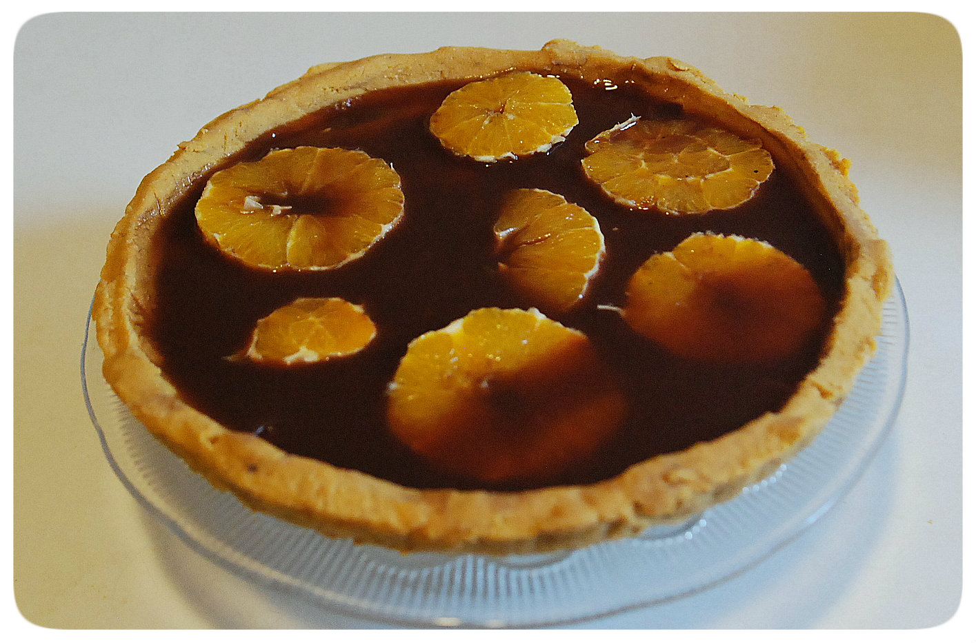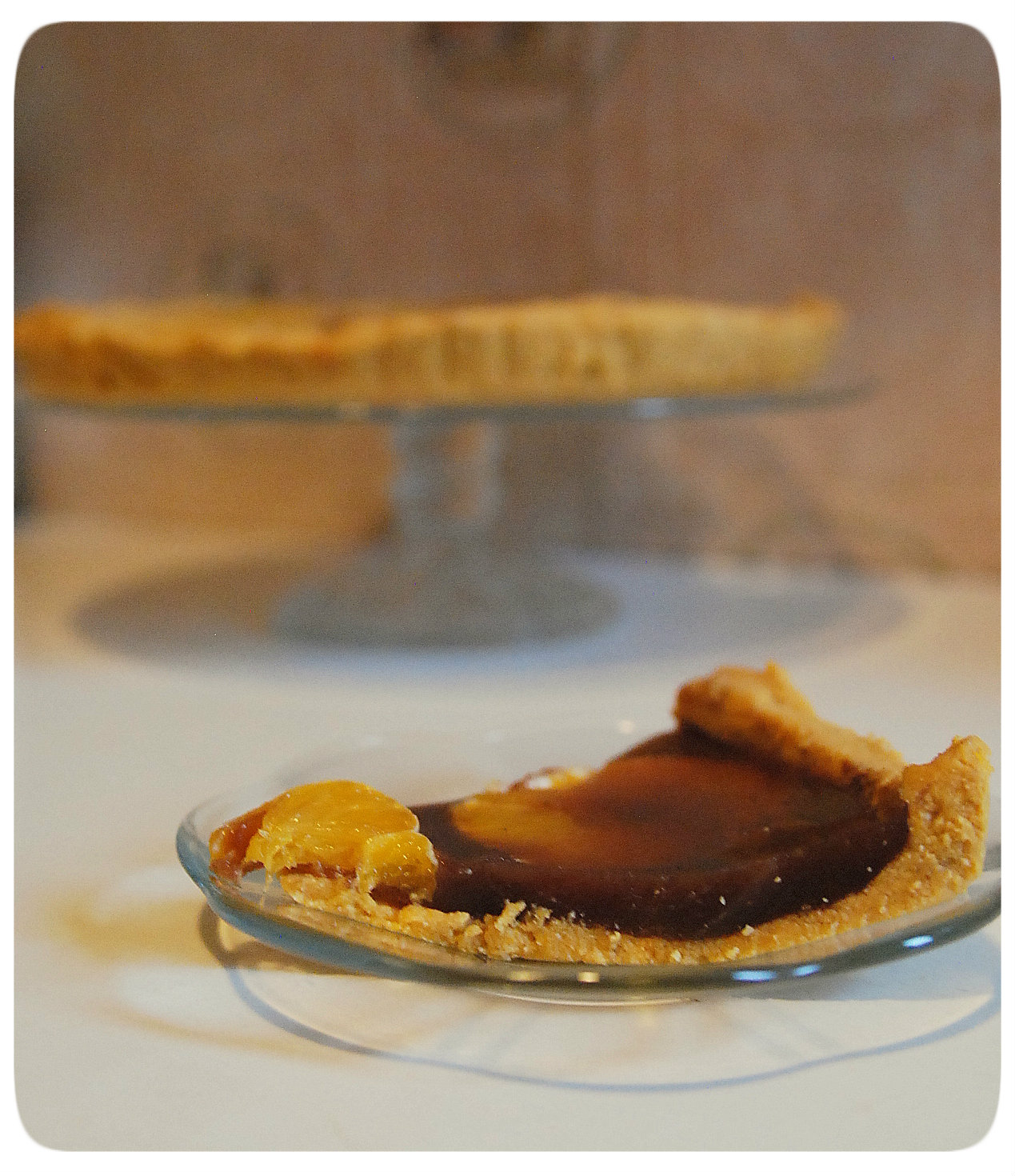 Batata i banana obieramy i kroimy na mniejsze kawałki, a następnie dusimy w garnku z 1/2 szklanki wody i masłem (lub olejem kokosowym). Kiedy batat będzie miękki, wyłączamy palnik, czekamy aż przestygnie, dodajemy miód i mąkę kokosową. Całość blendujemy. Wykładamy na formę do tarty (ja wykładam ją najpierw papierem do pieczenia, aby można było łatwo wyjąć ciasto) i wstawiamy na min 10 min do zamrażarki lub 30 min do lodówki. W tym czasie przygotowujemy galaretkę: do małego garnuszka odlewamy ok 1/4 soku z granata (można użyć dowolnego, owocowego) i zagotowujemy. Łyżkę żelatyny rozpuszczamy w 2 łyżkach z pozostałego, zimnego soku. Następnie wsypujemy żelatynę do zagotowanego soku i dokładnie mieszamy, aż do całkowitego rozpuszczenia. Mieszamy z resztą soku. Wyjmujemy nasz spód do tarty z zamrażarki (lub lodówki), wykładamy owocami (można pominąć), ja użyłam plasterków pomarańczy, a następnie wylewamy sok z granata z rozpuszczoną żelatyną. Wkładamy do lodówki na min 1h lub do zamrażarki na 30 min, aż do stężenia galaretki. Tarta gotowa!