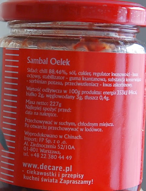 Sambal Oelek - cokolwiek to jest, w składzie sól, cukier, kwas octowy, guma ksantanowa, sorbinian potasu... nie jadłabym.