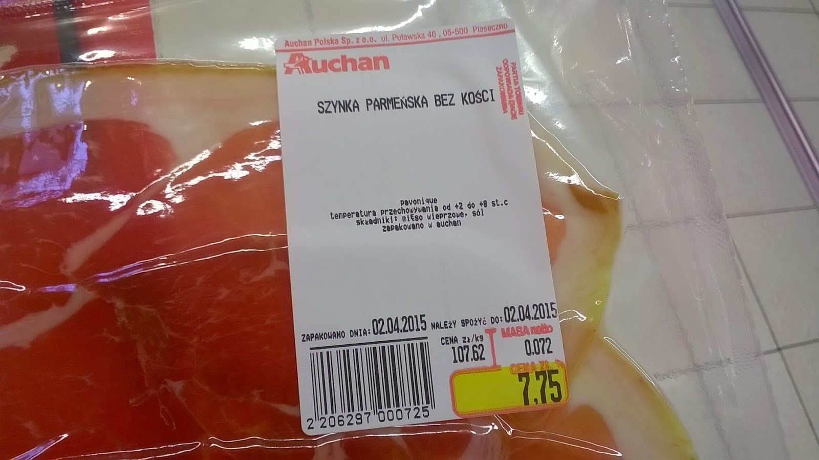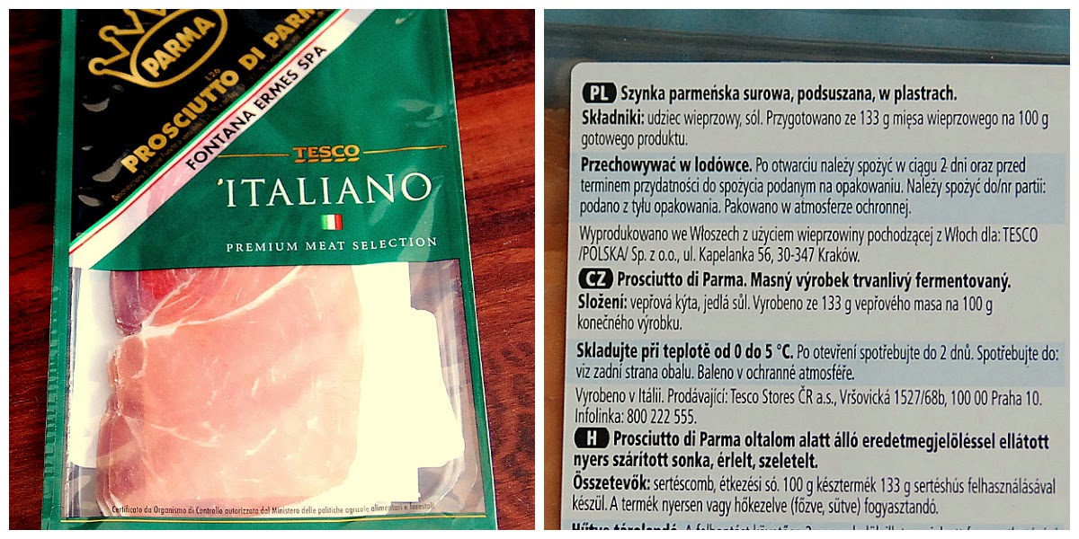 Tesco, szynka parmeńska - samo mięso i sól - chyba jedyna słuszna wędlina dostępna w tesco