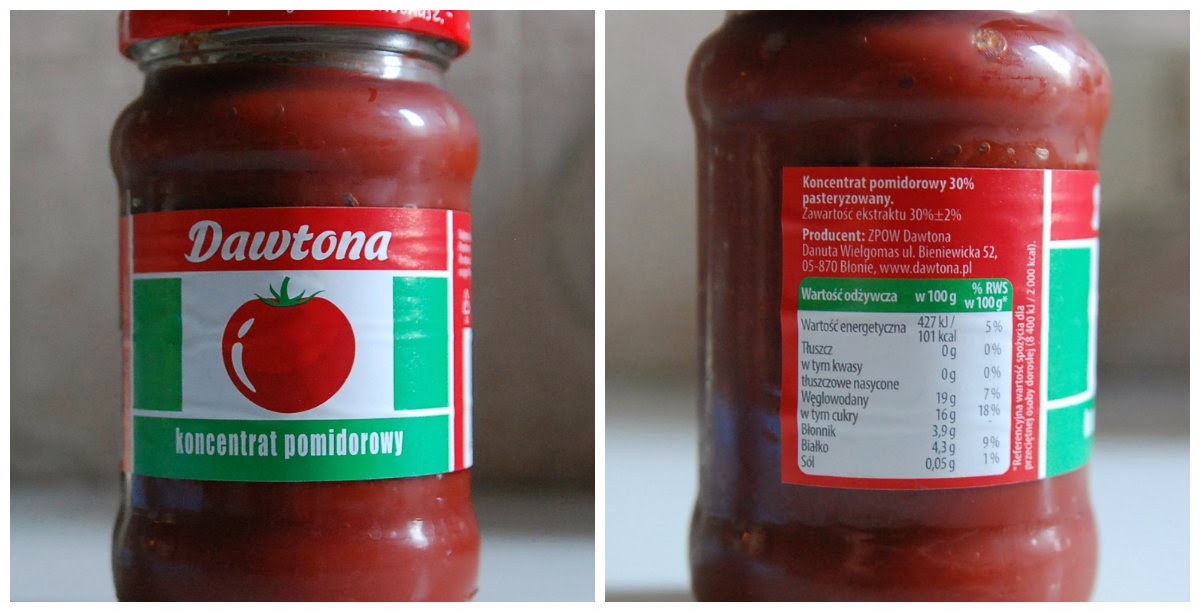 Koncentrat pomidorowy - tu akurat praktycznie zawsze dostaniemy 100%. W prosty sposób można wyczarować z niego domowy ketchup bez konserwantów i cukru -