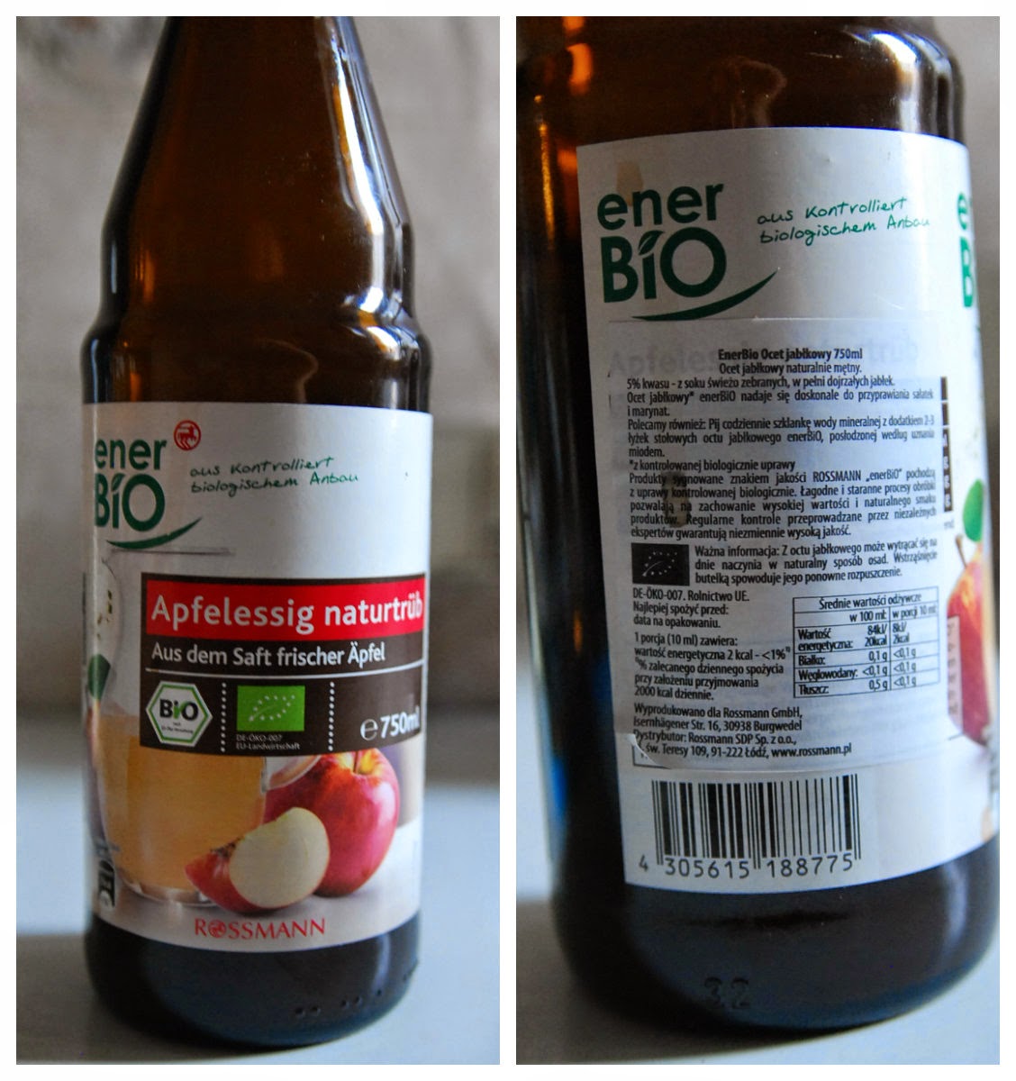 Rossmann, Enerbio -najlepszy ocet jabłkowy - 100%, niepasteryzowany. Te, dostępne w marketach najczęściej są pasteryzowane, czyli pozbawione wartości odżywczych - podczas obróbki termicznej zabijamy cenne witaminy, minerały i enzymy.