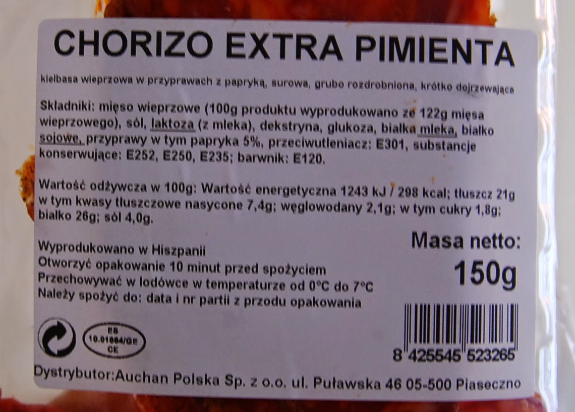 Tesco, zielone oliwki drylowane. Niestety jeszcze nigdy nie znalazłam oliwek bez dodatku kwasu mlekowego i askorbinowego. Wybierając oliwki szukajmy takich bez dodatku konserwantów - sorbinianów, azotanów, a także unikajmy tych z wypełnieniem sera, papryki.