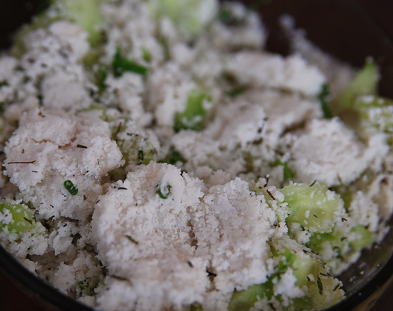 Mąkę kokosową mieszamy z dowolnymi przyprawami, zalewamy wodą lub mlekiem kokosowym - aż do uzyskania odpowiedniej konsystencji-... ponownie mieszamy... i gotowe! Można dodać tłuszcz wg. uznania, w zależności od tego czy chcecie mieć twaróg 0% tłuszczu, półtłusty czy też tłusty. "Twaróg" zjadłam z ogórkiem i szczypiorkiem :)