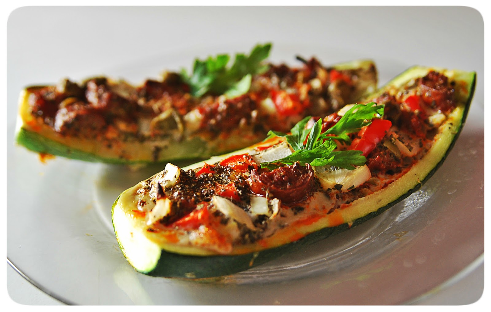 Chorizo to jeden z moich ulubionych hiszpańskich wyrobów - jest to tradycyjna kiełbasa wieprzowa. Bardzo ciężko jest ją kupić (mam oczywiści na myśli taką ze 100% mięsa) w Polsce, dlatego jak tylko dowiedziałam się, że można ją dostać w Lidlu (dostępne są dwa rodzaje - extra dulce, czyli delikatna oraz extra picante, czyli jak sama nazwa wskazuje - pikantna), w ramach tygodnia iberysjkiego, tj. hiszpańsko-portugalskiego - od razu kupiłam cały zapas. Tzn. miałam zamiar zrobić zapas, jednak szybko go zużyłam (pierwsze pęto zjadłam prosto z paczki :D) i trzeba było lecieć po kolejny. Aktualnie sezon na cukinię w pełni, więc postawiłam przygotować z niej coś na kształt paleo zapiekanki.