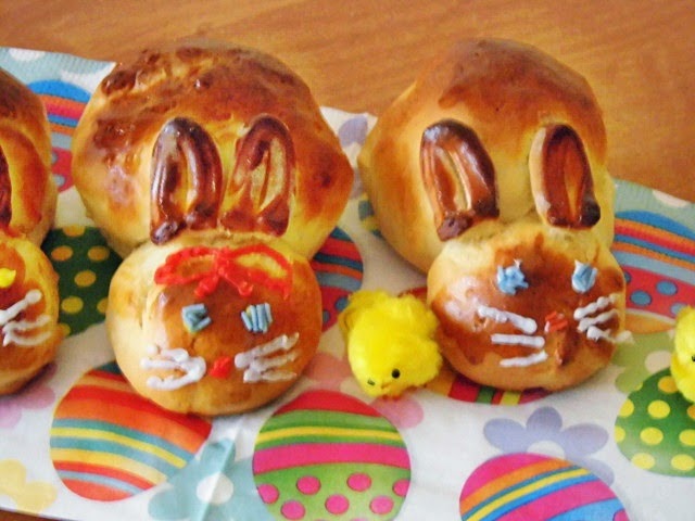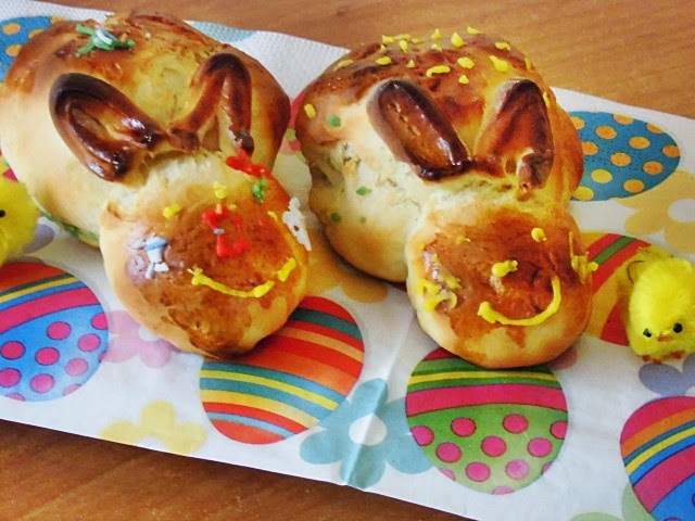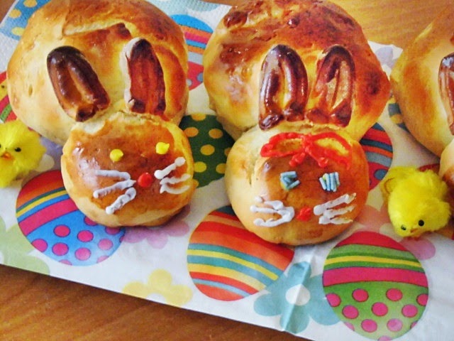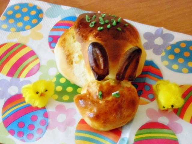 I znowu coś drożdżowego. Ostatnio dostałam bzika na punkcie drożdży ;) A tak poważnie to moje maluchy pochorowały się i chciałam aby miały zajęcie a tym zajęciem było ozdabianie zajączków. Drożdżowe zajączki są bardzo proste do zrobienia, ale za to bardzo efektownie prezentują się na stole. Trochę przyspieszyliśmy Wielkanoc, ale w końcu za nie cały miesiąc będzie Wielkanoc.