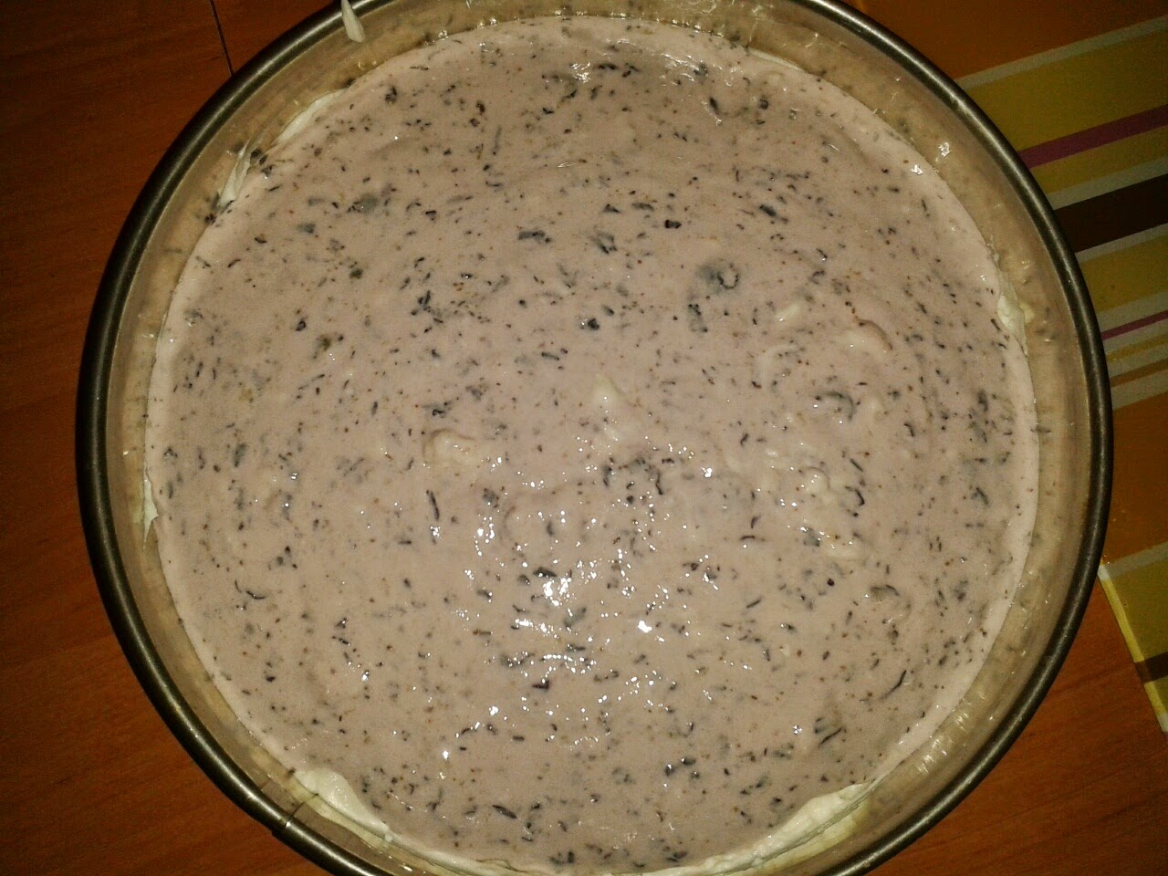 Na tortownicy wyłożonej biszkoptami wylać połowę masy serowej. Do drugiej części dodać borówki i zmiksować.