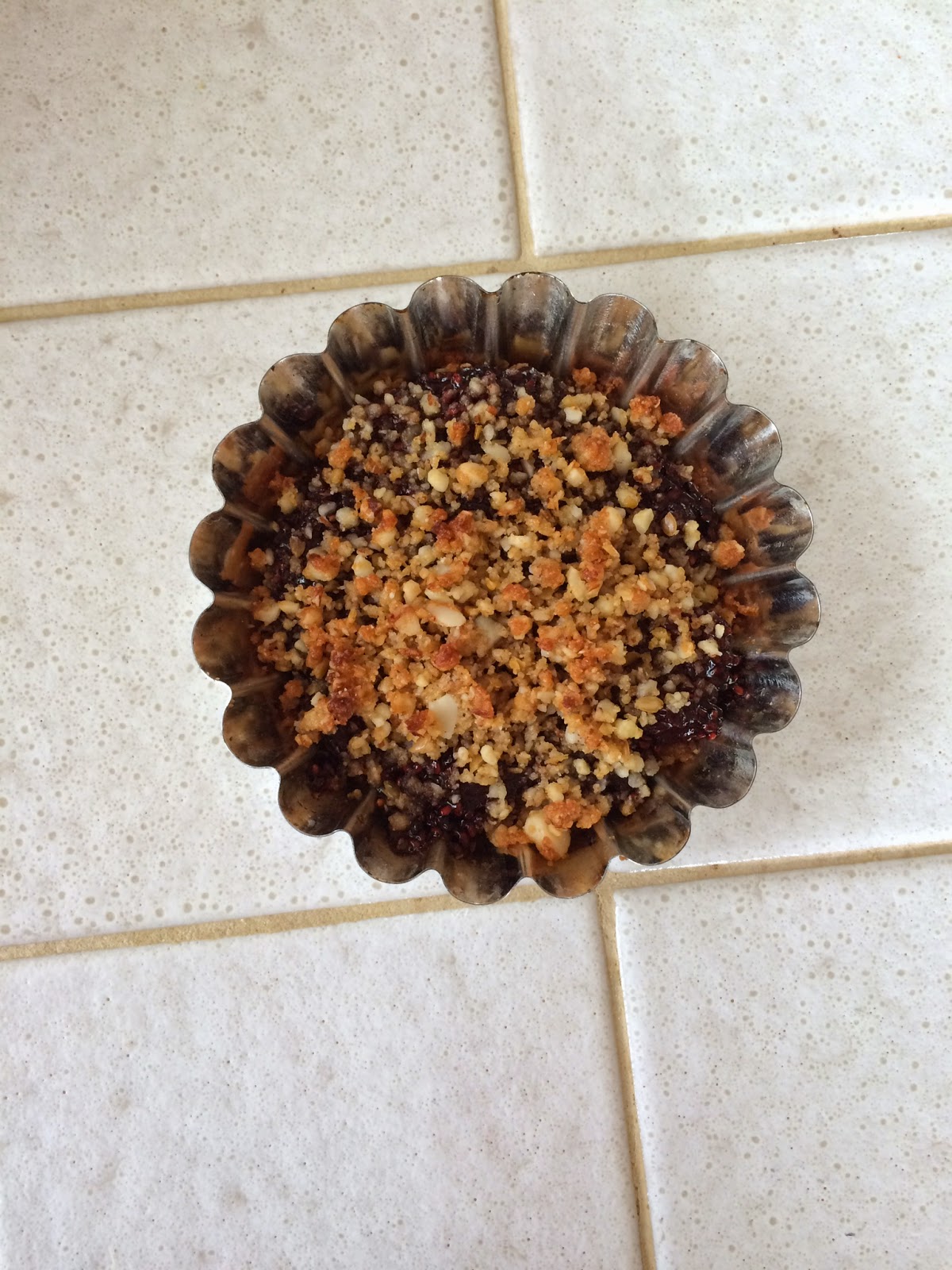 - Rozgrzej piekarnik do 175 stopni i piecz całość 15 minut lub aż kruszonka będzie przyrumieniona.