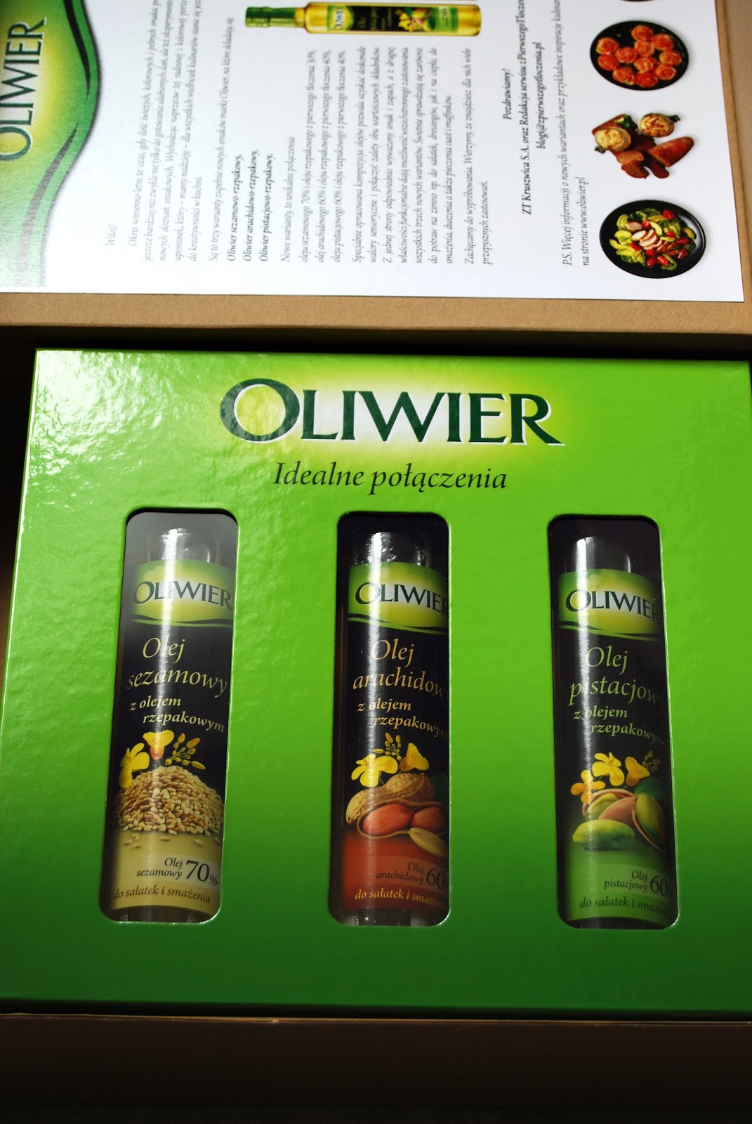 Tym razem w ładnie zapakowanym kartoniku były trzy oleje OLIVIER (uwielbiam ich opakowania i szkoda, że nie można takich kupić w sklepie ponieważ byłby to świetny pomysł na prezent dla kogoś kto uwielbia przygody kulinarne).