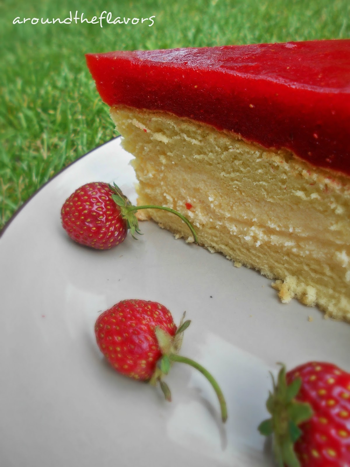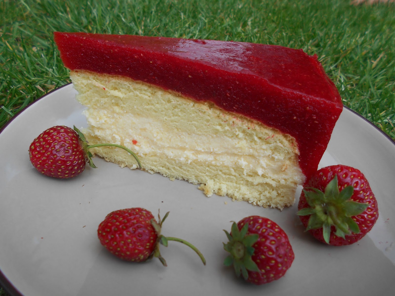 Delikatny biszkopt przełożony masą budyniową,a wszystko otulone musem z truskawek...Ciasto jest bardzo smaczne,do tego ten zapach truskawek...Skusicie się?
