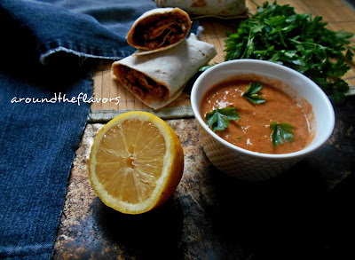 Do sosu dodaj mięso, osączoną z zalewy fasolę i drobno posiekaną kolendrę lub natkę pietruszki. Dodaj posiekany czosnek i wymieszaj. Następnie dodaj ajwar oraz pozostałą kolendrę i sok z 1/2 cytryny.Doprowadź do wrzenia, gotuj jeszcze przez chwilę.