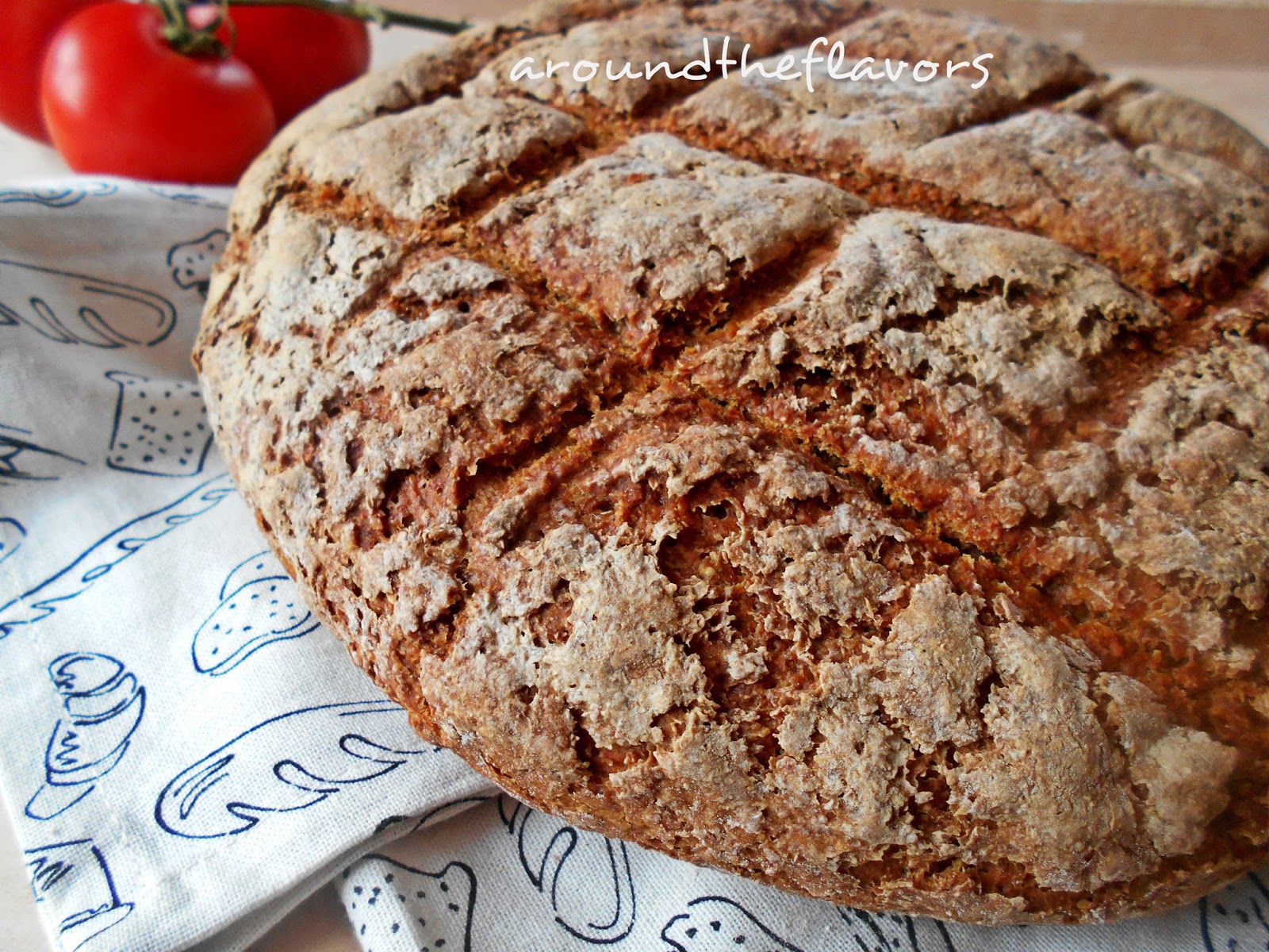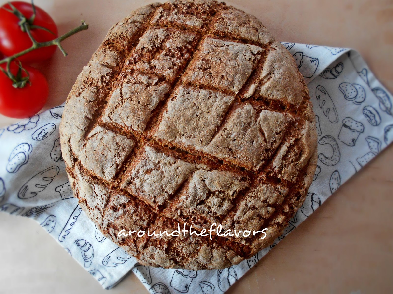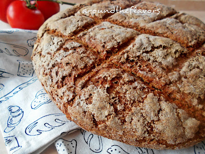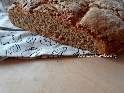 Piekarnik nastaw na 200 C. Nożem natnij wierzch chlebka np. tak jak ja w kratkę. Chleb piecz przez ok. 90 minut.