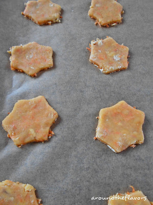 Wyjmij ciasto z lodówki i rozwałkuj je na cienki placek. Wybraną foremką wykrawaj ciasteczka i układaj ja na wyłożonej papierem do pieczenia blaszce.