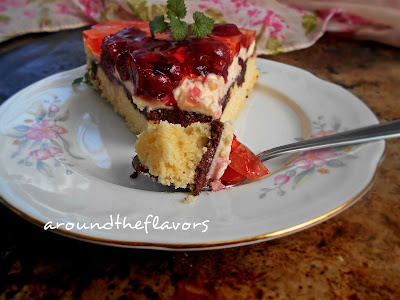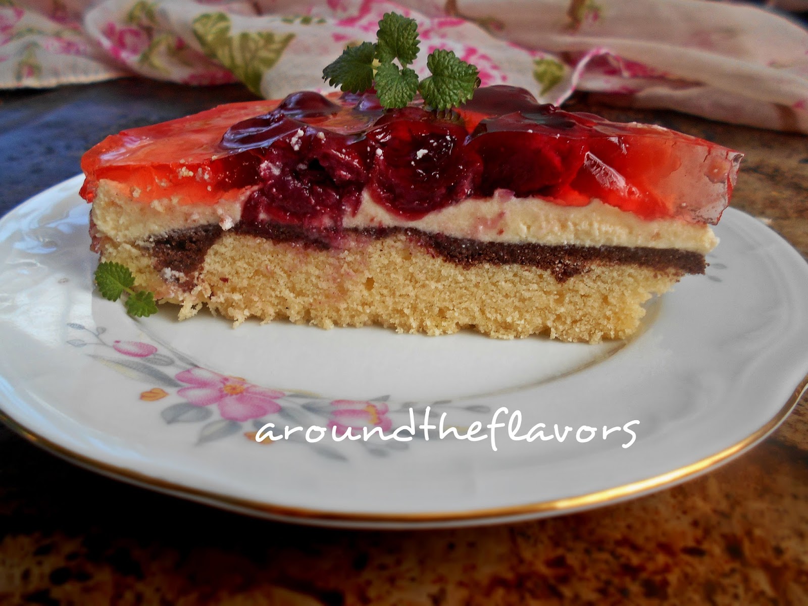 Galaretkę przygotuj według przepisu na opakowaniu. Gdy zacznie tężeć wylej na wierzch ciasta i wstaw na kilka godzin do lodówki.