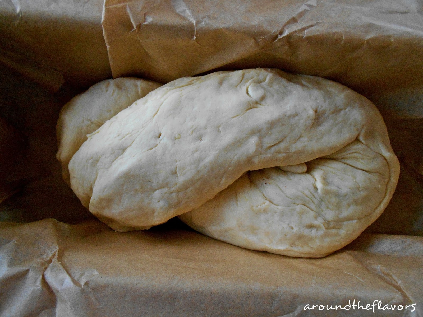 Z ciasta uformuj literę U i zapleć ciasto. Ciasto przełóż do keksówki wyłożonej papierem do pieczenia i odstaw na ok. 30 minut.