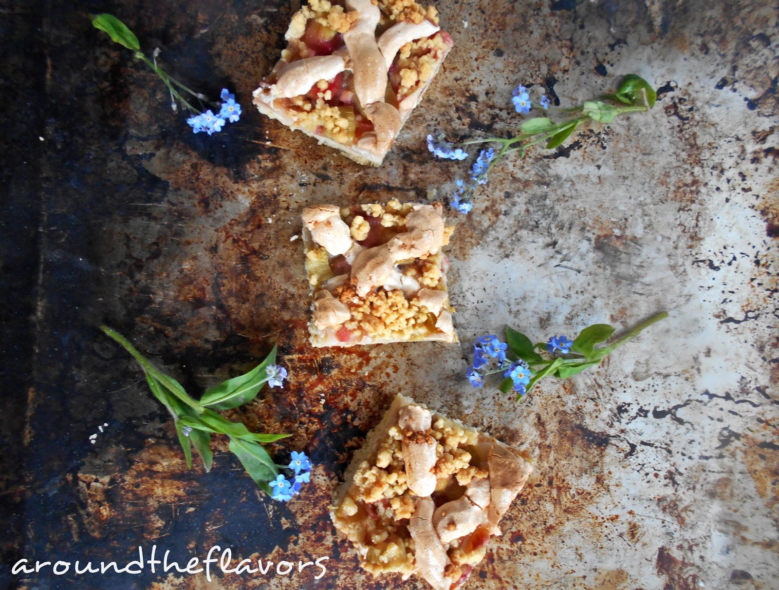 Białka ubij na sztywną pianę, pod koniec ubijania dodaj pozostały cukier. Tak przygotowaną bezę przełóż do rękawa cukierniczego. Na cieście z zrób bezową kratkę.