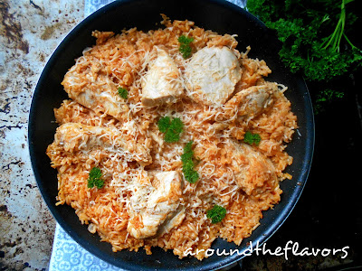 Do bulionu dodaj ryż. Ponownie zagotuj i dodaj pierś z kurczaka pokrojoną na mniejsze kawałki.