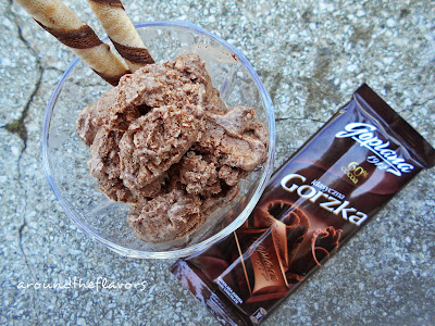 Czekoladę połam na kawałki i rozpuść w kąpieli wodnej.Powoli wlewaj do przestudzonej masy,delikatnie mieszając.