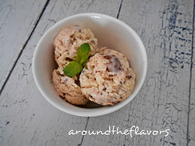 Batony pokrój w kostkę, czekoladę i migdały drobno posiekaj, dodaj do masy (zostaw część aby wyłożyć na wierzch lodów) wymieszaj i przełóż do pojemniczka.