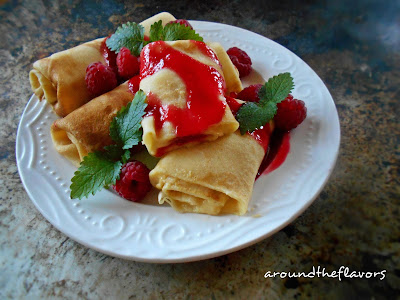 Na naleśniki nakładaj budyń,zwiń. Podawaj polane sosem malinowym.