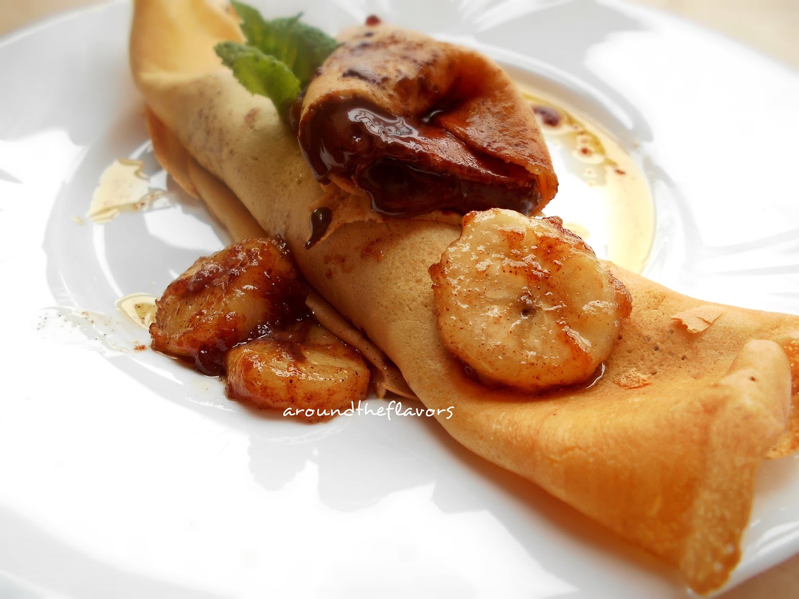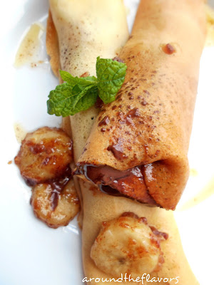 Gotowe naleśniki posmaruj nutellą. Na nutellę wyłóż banany i zwiń np. w rulon. Smacznego !