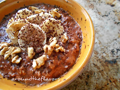 Gotuj na małym ogniu przez ok. 7 minut. Owsiankę przełóż do miseczek. Podawaj z bananem pokrojonym w plasterki,orzechami,cynamonem i startą czekoladą.