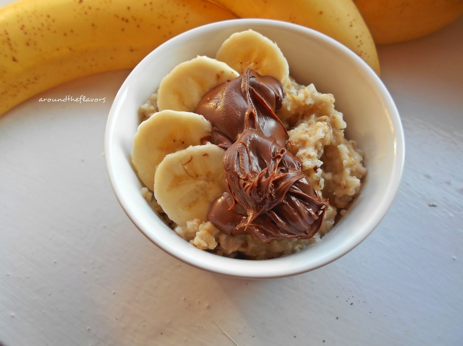 Po czym przełóż do miseczki i podawaj z bananem oraz nutellą.