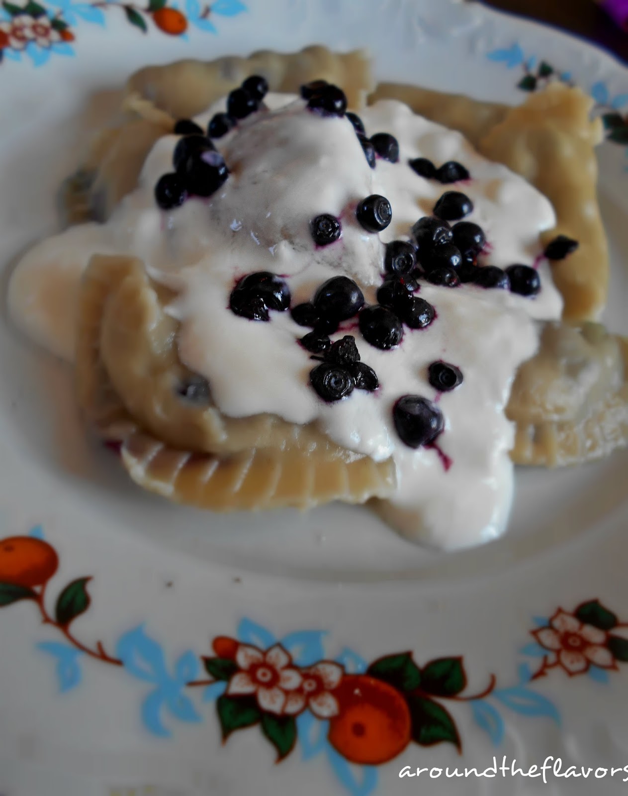 Orkiszowe pierogi z jagodami z ciasta zaparzanego
