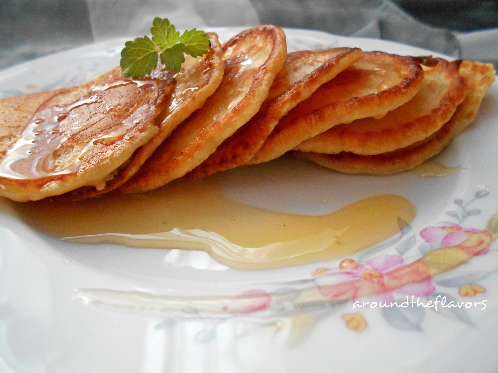 Placuszki smaż na odrobinie masła,z obu stron na złoty kolor.Podawaj polane miodem.