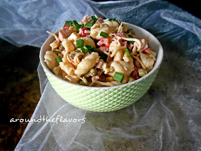 Seler osącz z zalewy i dodaj do makaronu. Dodaj również pozostałe składniki i dokładnie wymieszaj.