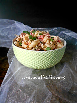 Groszek również ugotuj w lekko osolonej wodzie i ostudź. Dodaj do makaronu.