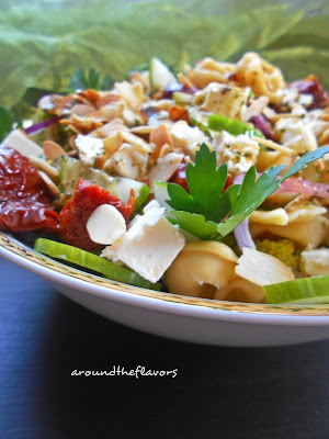 Tortellini ugotuj według przepisu na opakowaniu,brokuł podziel na różyczki. Migdały upraż na suchej patelni.