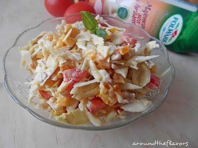 Tak przygotowany sos dodaj do surówki i dokładnie wymieszaj.
